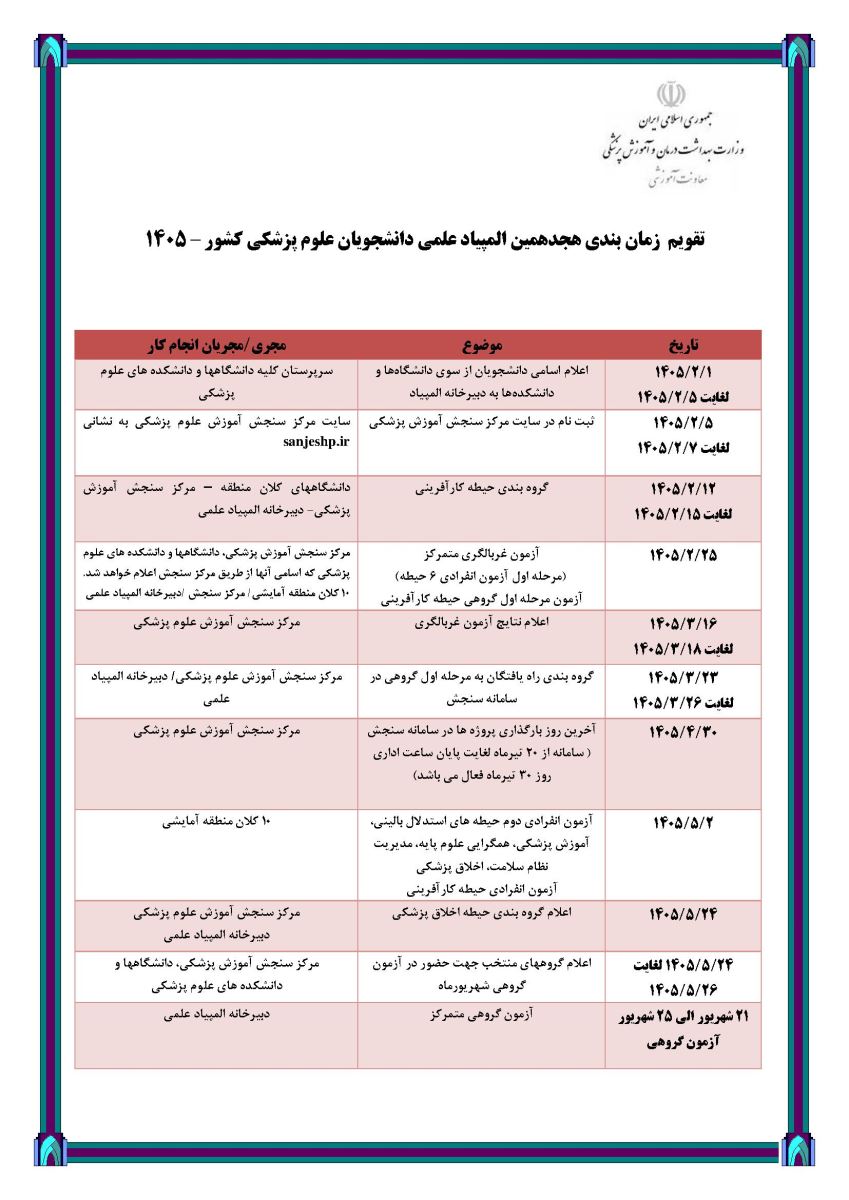 اصلاحیه شرایط شرکت کنندگان هجدهمین المپیاد علمی دانشجویان علوم پزشکی -سال 1405